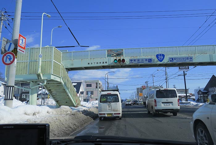 国道39号、北見神社の鳥居前から東9丁目歩道橋方向