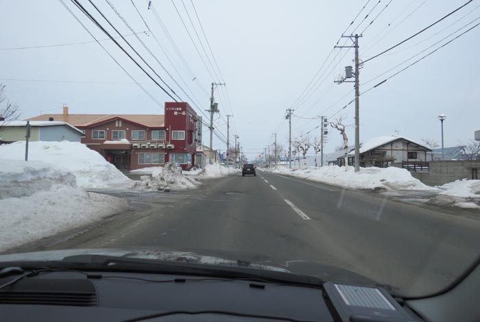 午前7時30分、南岸通り、野付牛自動車学校前から無加川町方向