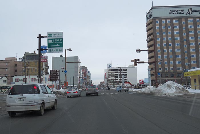 国道39号、五差路から北見駅方向