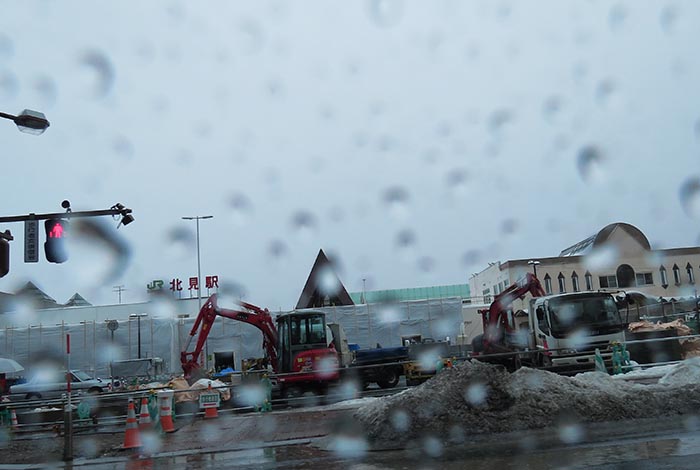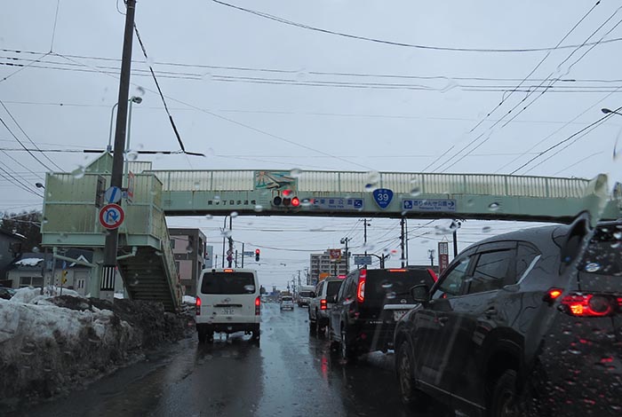 午前9時20分、国道39号の五差路から左は石北峠・旭川・札幌方面