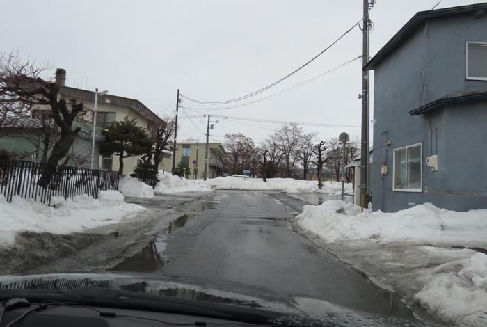 午前7時30分、松浦水産駐車場裏の通りを北3条通り側から北4条通り方向