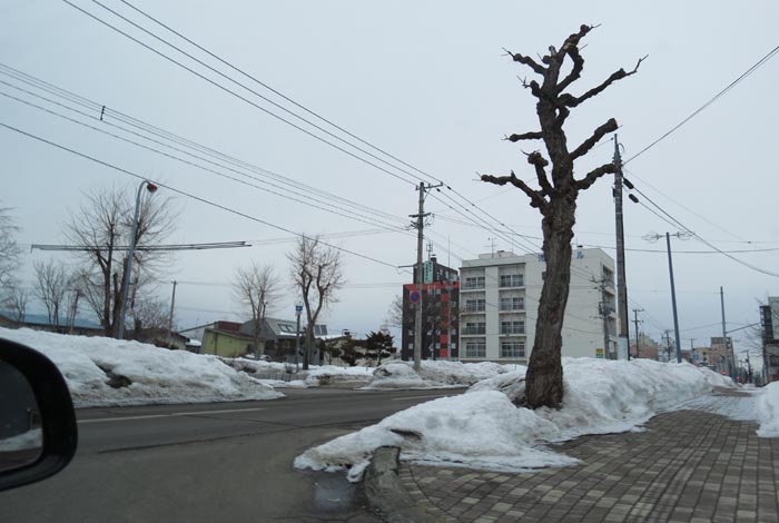 午前7時30分、松浦水産駐車場裏の通りを北3条通り側から北4条通り方向