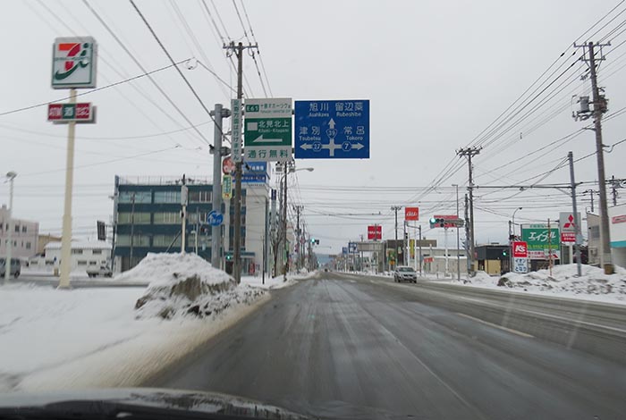 国道39号、北見トヨペット前からとん田通り交差点方向