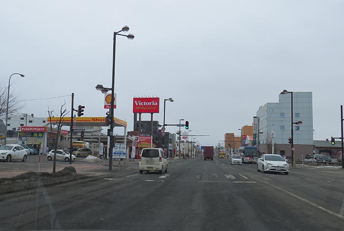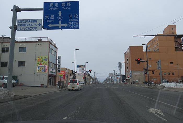 国道39号、五差路から北見駅方向
