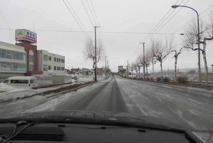 午前7時30分、南岸通り、野付牛自動車学校前から無加川町方向