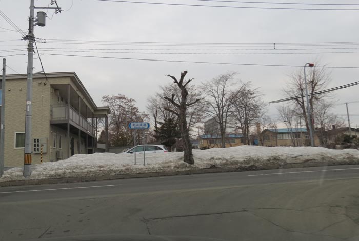 前方の街路樹の向こうが石北大通り