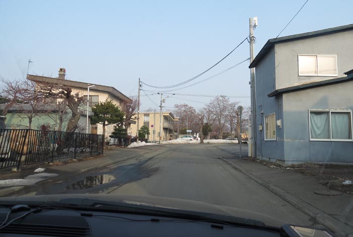 午前7時30分、松浦水産駐車場裏の通りを北3条通り側から北4条通り方向
