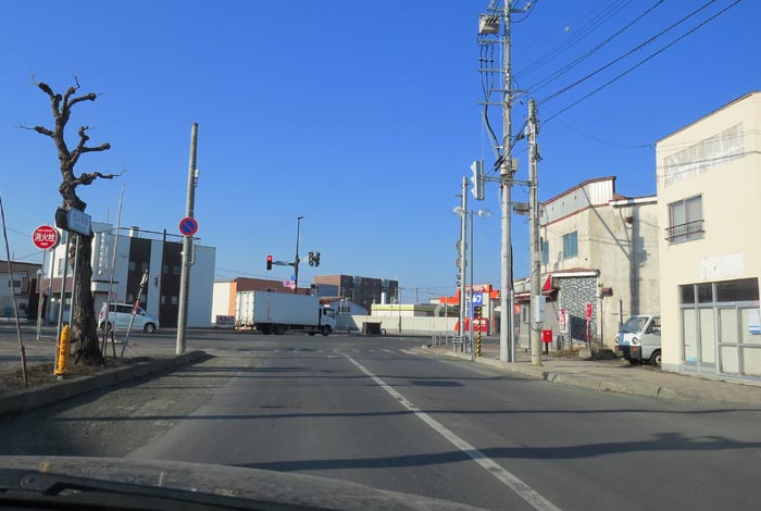 午前7時30分、松浦水産駐車場裏の通りを北3条通り側から北4条通り方向