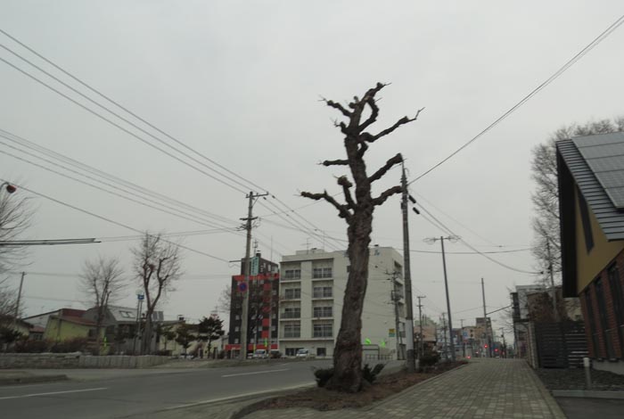 前方の街路樹の向こうが石北大通り