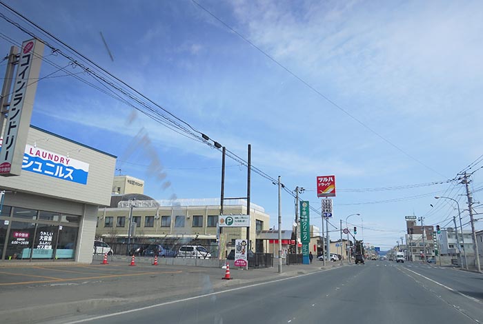 国道39号、公園町の千葉クリニックから東6号線昭和通り交差点方向