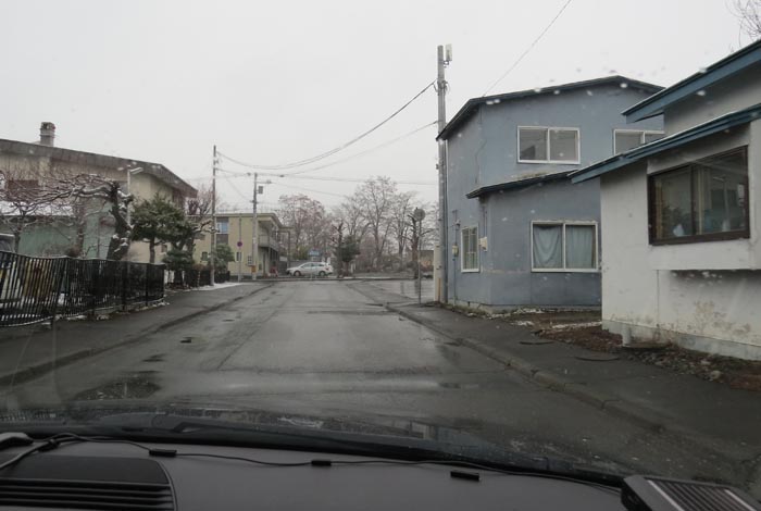 午前7時30分、松浦水産駐車場裏の通りを北3条通り側から北4条通り方向