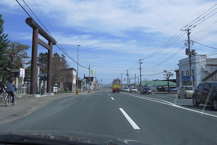 国道39号、北見神社の鳥居前から東9丁目歩道橋方向