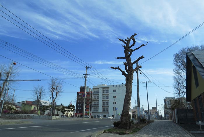 午前7時30分、松浦水産駐車場裏の通りを北3条通り側から北4条通り方向