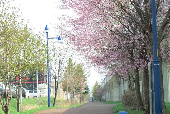 前方がJR石北本線高架橋、写真右が北見駅方向
