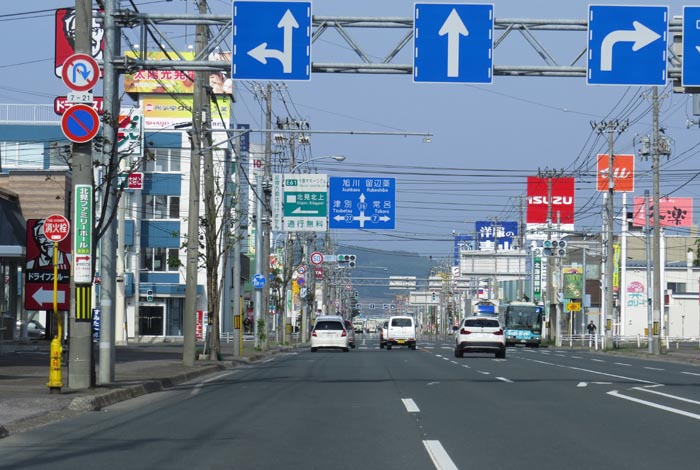 国道39号、北見トヨペット前からとん田通り交差点方向