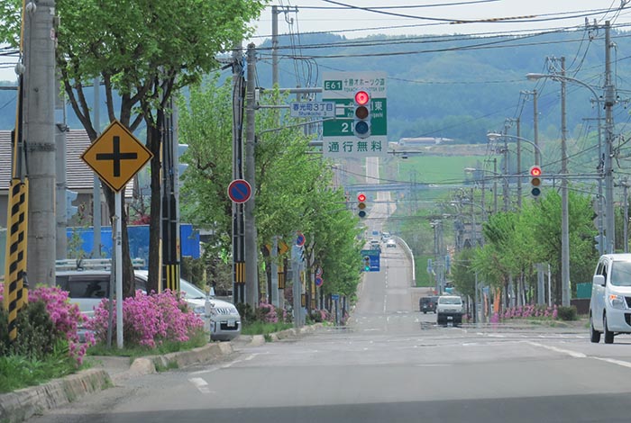 昭和通りの左は東7号線春光通りの柏陽駅方向