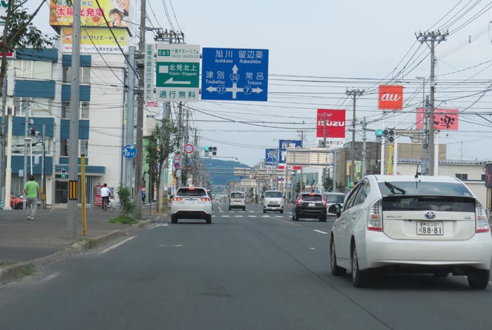 国道39号、北見トヨペット前からとん田通り交差点方向
