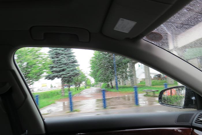 前方がJR石北本線高架橋、写真右が北見駅方向