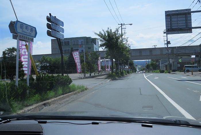 前方がJR石北本線高架橋、写真右が北見駅方向