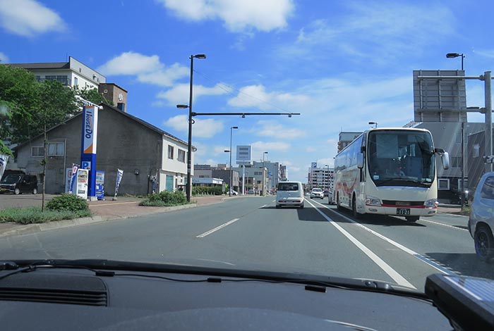 国道39号、北見神社の鳥居前から東9丁目歩道橋方向