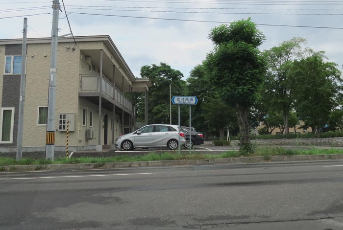 前方の街路樹の向こうが石北大通り