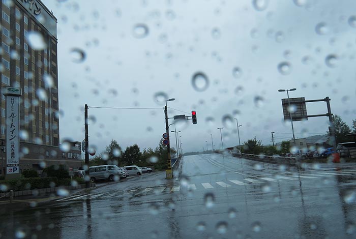 午前9時20分、国道39号の五差路から左は石北峠・旭川・札幌方面