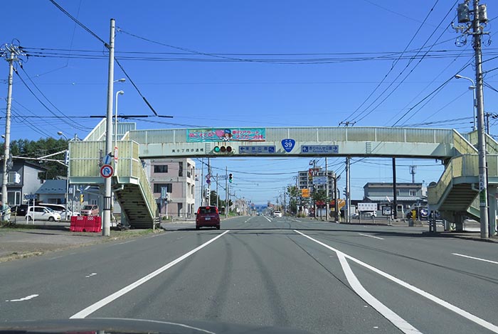 国道39号、北見神社の鳥居前から東9丁目歩道橋方向
