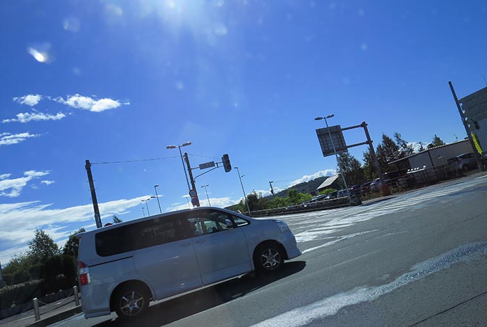 午前9時20分、国道39号の五差路から左は石北峠・旭川・札幌方面