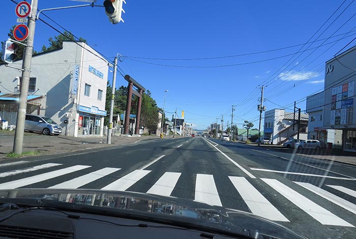 国道39号、北見神社の鳥居前から東9丁目歩道橋方向