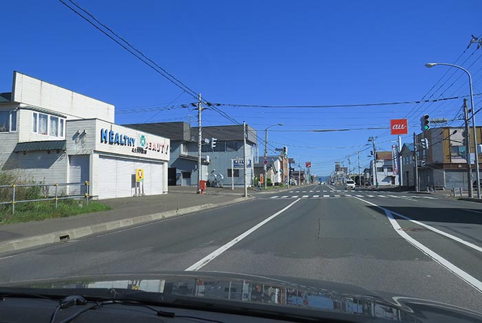 午前9時20分、国道39号の五差路から左は石北峠・旭川・札幌方面