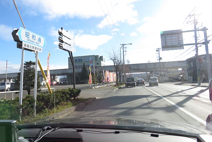 昭和通りのJR高架橋下から北見大橋方向