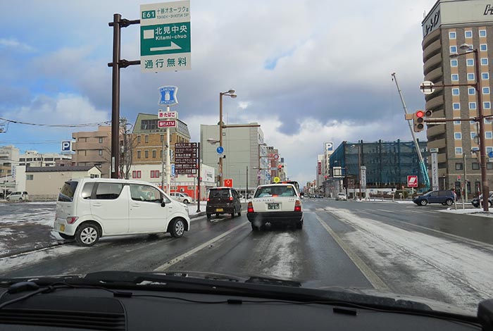 午前9時20分、国道39号の五差路から左は石北峠・旭川・札幌方面