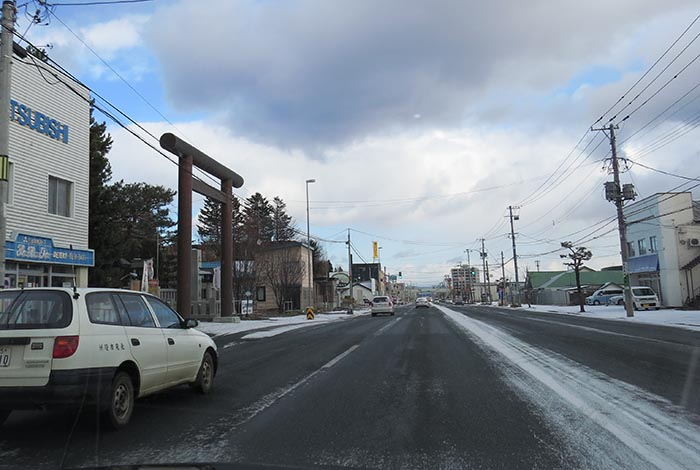 国道39号、北見神社の鳥居前から東9丁目歩道橋方向
