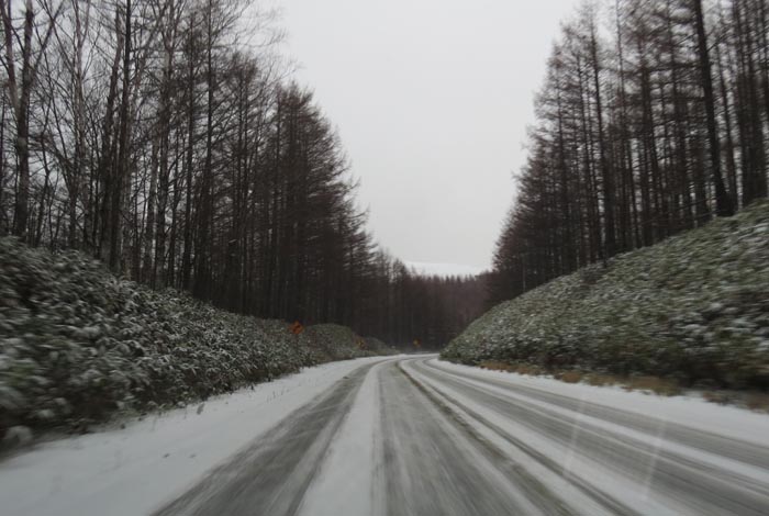 午後2時20分、国道242号、金華峠頂上側から下りで生田原の清里方向