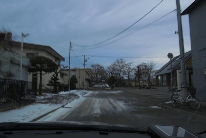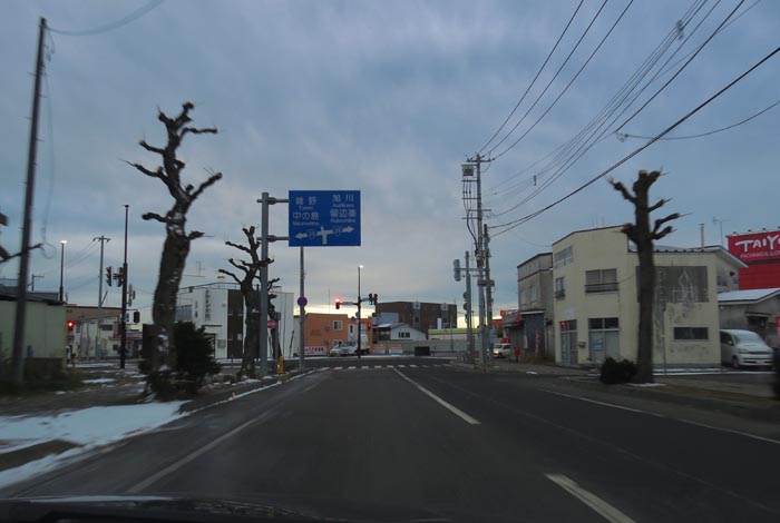 午前7時30分、松浦水産駐車場裏の通りを北3条通り側から北4条通り方向
