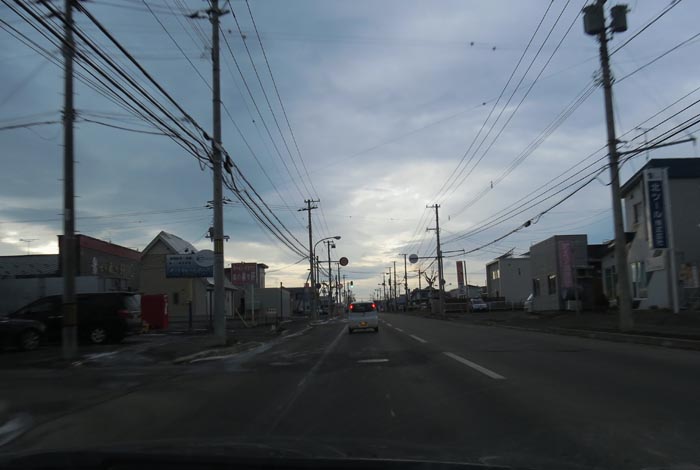 午前7時30分、南岸通り、野付牛自動車学校前から無加川町方向