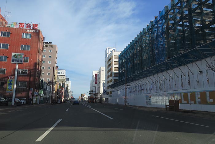 国道39号、大通り東4丁目交差点から左の仁頃通り側