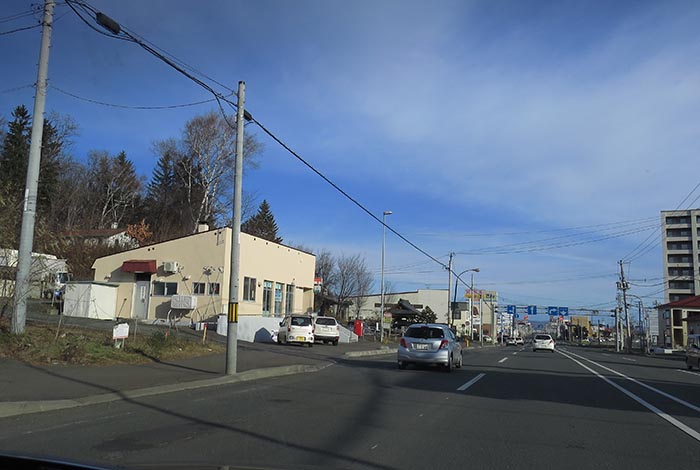 午前9時20分、国道39号の五差路から左は石北峠・旭川・札幌方面