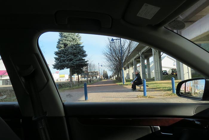 前方がJR石北本線高架橋、写真右が北見駅方向
