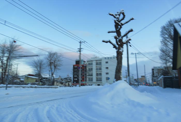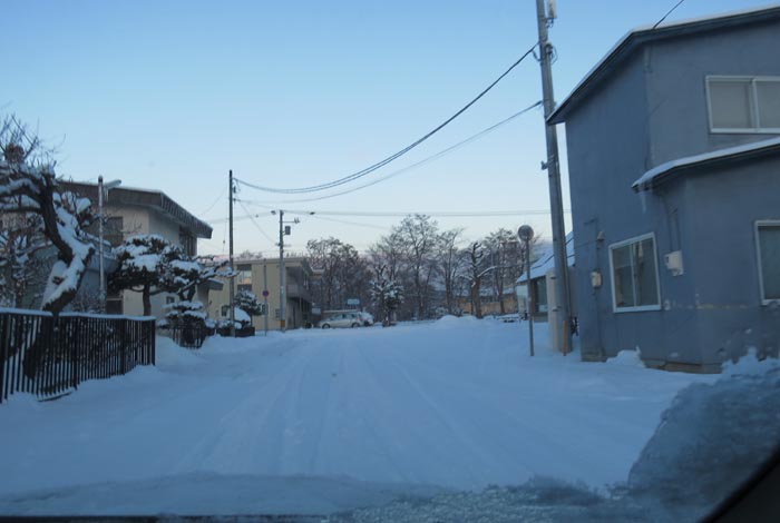午前7時30分、松浦水産駐車場裏の通りを北3条通り側から北4条通り方向