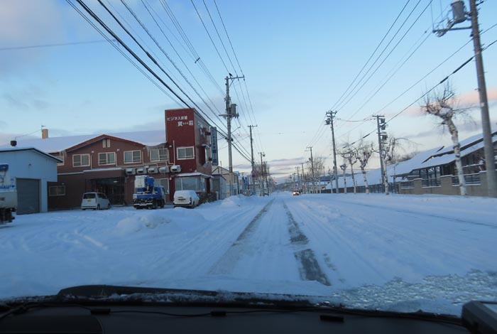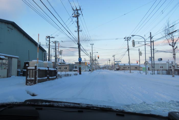 午前7時30分、南岸通り、野付牛自動車学校前から無加川町方向