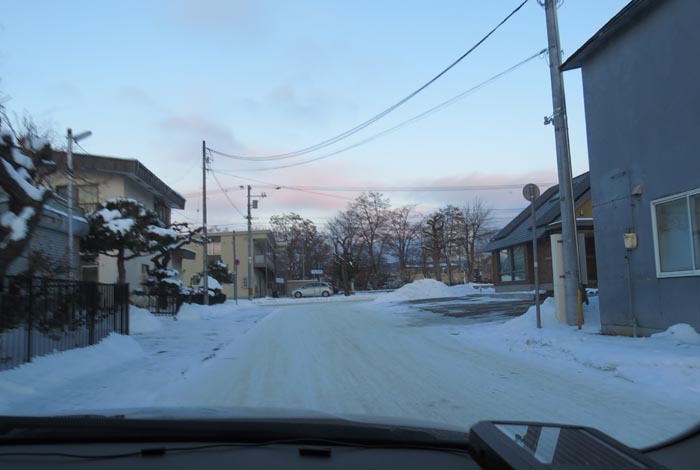 午前7時30分、松浦水産駐車場裏の通りを北3条通り側から北4条通り方向