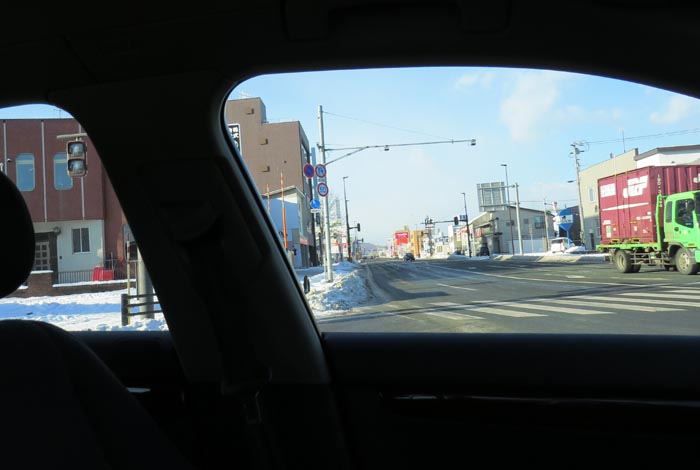 午前9時20分、国道39号の五差路から左は石北峠・旭川・札幌方面