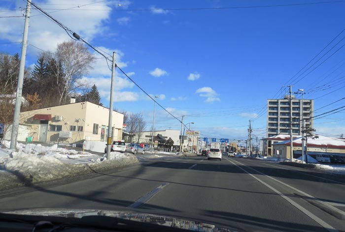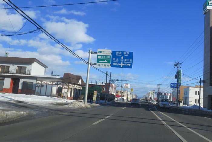 午前9時20分、国道39号の五差路から左は石北峠・旭川・札幌方面