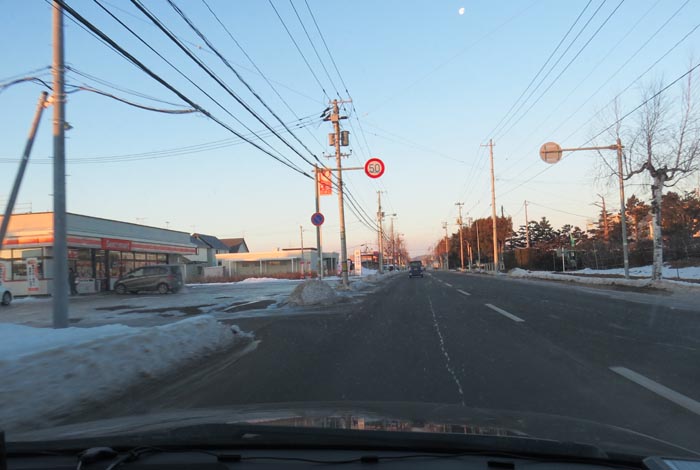 午前7時30分、南岸通り、野付牛自動車学校前から無加川町方向