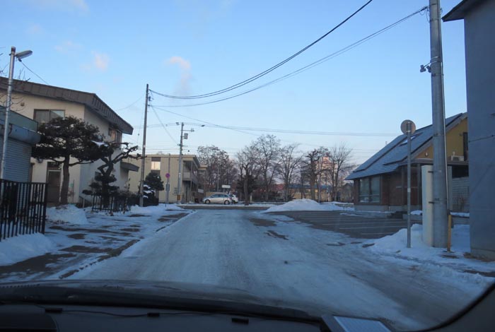 午前7時30分、松浦水産駐車場裏の通りを北3条通り側から北4条通り方向