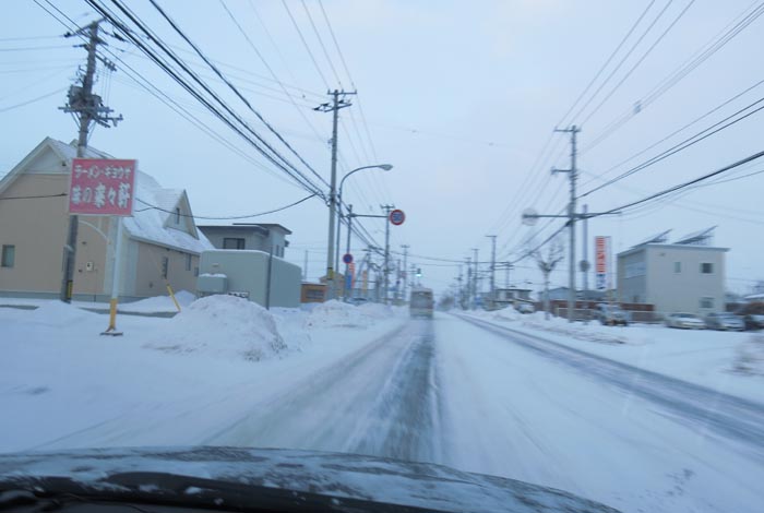 午前7時30分、南岸通り、野付牛自動車学校前から無加川町方向