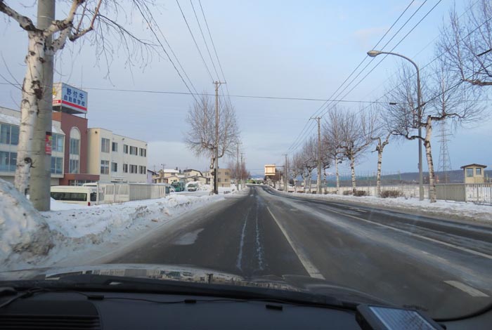 午前7時30分、南岸通り、野付牛自動車学校前から無加川町方向