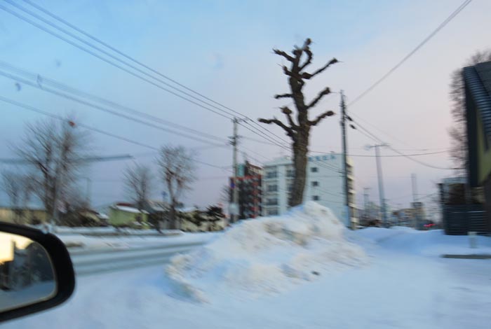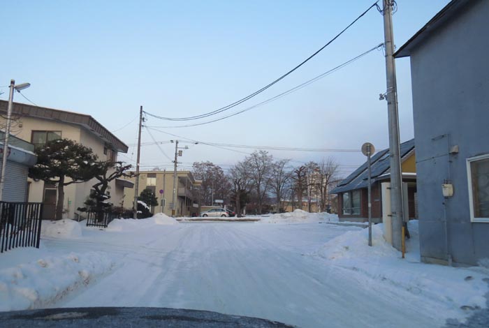 午前7時30分、松浦水産駐車場裏の通りを北3条通り側から北4条通り方向
