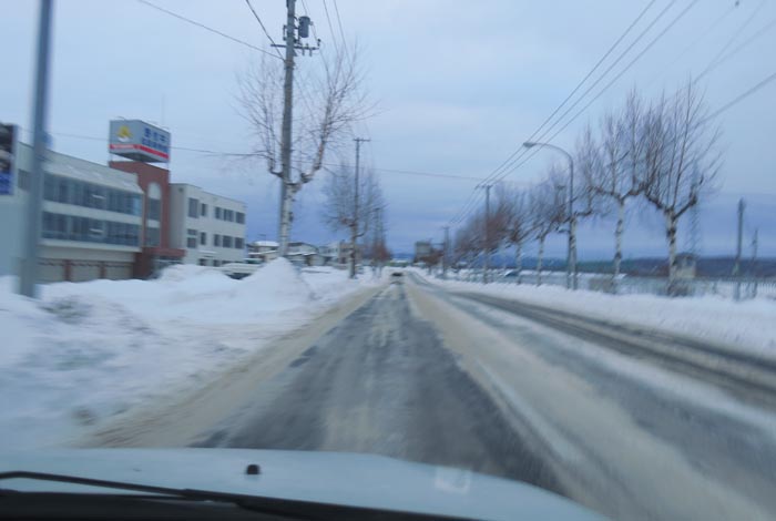 午前7時30分、南岸通り、野付牛自動車学校前から無加川町方向